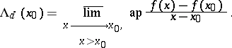 | + | {\rm ap}\, \lim_{x\to x_0} \frac{f(x)-f(x_0)}{x-x_0} | ||