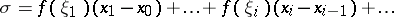 − | A generalization of the concept of a [[Cauchy integral|Cauchy integral]] to a certain class of discontinuous functions; introduced by B. Riemann (1853). Let a function | + | A generalization of the concept of a [[Cauchy integral|Cauchy integral]] to a certain class of discontinuous functions; introduced by B. Riemann (1853). Let a function $f$ be given on an interval $[a,b]$ and let $a=x_0<x_1<\dots<x_n=b$, <img align="absmiddle" border="0" src="https://www.encyclopediaofmath.org/legacyimages/r/r081/r081950/r0819504.png" />, <img align="absmiddle" border="0" src="https://www.encyclopediaofmath.org/legacyimages/r/r081/r081950/r0819505.png" />. The sum |