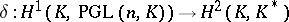 . A central simple algebra is assigned its class in the Brauer group by the coboundary operator