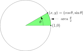− | + | filldraw(z0--arc(z0,1,0,theta)--cycle,lightgreen); | |