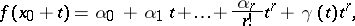 | − | + | where <img align="absmiddle" border="0" src="https://www.encyclopediaofmath.org/legacyimages/p/p071/p071900/p07190034.png" /> are constants and <img align="absmiddle" border="0" src="https://www.encyclopediaofmath.org/legacyimages/p/p071/p071900/p07190035.png" /> as <img align="absmiddle" border="0" src="https://www.encyclopediaofmath.org/legacyimages/p/p071/p071900/p07190036.png" /> (<img align="absmiddle" border="0" src="https://www.encyclopediaofmath.org/legacyimages/p/p071/p071900/p07190037.png" /> is a number or the symbol <img align="absmiddle" border="0" src="https://www.encyclopediaofmath.org/legacyimages/p/p071/p071900/p07190038.png" />). Then <img align="absmiddle" border="0" src="https://www.encyclopediaofmath.org/legacyimages/p/p071/p071900/p07190039.png" /> is also called the Peano derivative of order <img align="absmiddle" border="0" src="https://www.encyclopediaofmath.org/legacyimages/p/p071/p071900/p07190040.png" /> of the function <img align="absmiddle" border="0" src="https://www.encyclopediaofmath.org/legacyimages/p/p071/p071900/p07190041.png" /> at the point <img align="absmiddle" border="0" src="https://www.encyclopediaofmath.org/legacyimages/p/p071/p071900/p07190042.png" />. It was introduced by G. Peano. | |