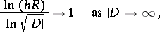 are, respectively, the class number, the regulator (cf. Regulator of an algebraic number field) and the discriminant of the field) shows that the class number tends to infinity as
