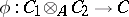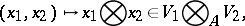 The tensor product, or Kronecker product (cf. Matrix multiplication), of two matrices