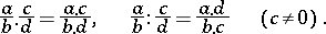 is taken as the common denominator. Multiplication and division of fractions is given by the following rules: