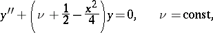 is strongly singular (cf. Singular point). An equation of this type was first studied by H. Weber in potential theory in connection with the parabolic cylinder [1]; it is the result of separation of variables for the Laplace equation in parabolic coordinates. The substitution
