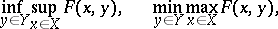 Cf. Minimax statistical procedure for an interpretation in statistics, [a1] for minimaxima in game theory, and [a2], [a3] for a discussion of minimaxima and maximinima in decision theory. Minimax (and maximin) considerations also occur in other parts of mathematics, for instance in approximation theory, [a4].