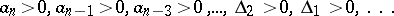 The Liénard–Chipart criterion: Any of the following four conditions is necessary and sufficient in order that all roots of a polynomial (*) with real coefficients have negative real parts: