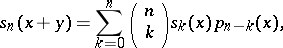 is a sequence of binomial type. Among the class of Sheffer sequences are included sequences of polynomials associated with the names of Ch. Hermite, E.N. Laguerre, J. Bernoulli, L. Euler, S.D. Poisson and C. Charlier, J. Meixner, F.B. Pidduck, S. Narumi, G. Boole, G.M. Mittag-Leffler, F.W. Bessel, E.T. Bell, N.H. Abel, and others.