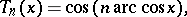 is a natural number, consists of the Chebyshev polynomials (of the first kind) of degree