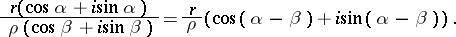 while division of the complex numbers in their trigonometric form is given by the formula