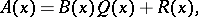 Division with remainder of polynomials with coefficients in a given field is defined in a similar manner. It consists in finding, for two given polynomials