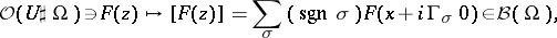 satisfies the axioms for a sheaf. It is a flabby sheaf, i.e. any section extends to the whole space. The sheaf of hyperfunctions is defined via the derived sheaf as
