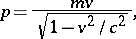called the motion mass of the body. By this definition, in relativity theory the momentum and velocity are related by the classical formula , where the mass depends on the velocity. The mass of a body is related to its energy