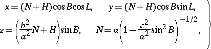 of deflection of the plumb line from the normal to the ellipsoid are small. It is assumed at the same time that the axis of rotation of the Earth and the ellipsoid axis are parallel, and that the planes of the initial astronomical and geodetic meridians are parallel as well.