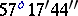 The angle corresponding to an arc on a circle with length equal to the radius; thus, degrees is