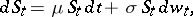 where , , and are constants, and denotes a standard Brownian motion (cf. also Stochastic process; Stochastic differential equation). Define a self-financing portfolio strategy as a pair of processes adapted to the filtration associated to the Brownian motion in (a2), such that the process defined by (the portfolio value process) satisfies