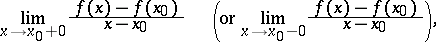 A generalization of the concept of a derivative, in which the ordinary limit is replaced by a one-sided limit. If the following limit exists for a function of a real variable