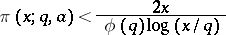 for all . The constant possesses a significant meaning in the context of sieve methods [a2], [a7]. By adapting the Brun–Titchmarsh theorem [a1], [a4], if necessary, it is possible to sharpen the above bound in various ranges for .