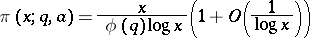 For coprime integers and , let denote the number of primes not exceeding that are congruent to modulo . Using analytic methods of the theory of -functions [a8], one can show that the asymptotic formula