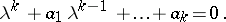. Suppose that all the roots are simple. To express the solutions of (9) in terms of these elementary particular solutions, it is convenient to write the equation in the form: