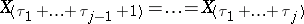 ; $X _ { ( \tau _ { 1 } + \ldots + \tau _ { j - 1 } + 1 ) } = \ldots = X _ { ( \tau _ { 1 } + \ldots + \tau _ { j } ) }$ ; confidence 0.575