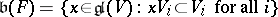 60. l05852024.png ; $b ( F ) = \{ x \in \mathfrak { g } | ( V ) : x V _ { i } \subset V _ { i } \text { for all } i \}$ ; confidence 0.136