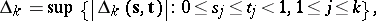 79. l13006050.png ; $\Delta _ { k } = \operatorname { sup } \{ | \Delta _ { k } ( \mathbf{s} , \mathbf{t} ) | : 0 \leq s _ { j } \leq t _ { j } < 1,1 \leq j \leq k \},$ ; confidence 0.867