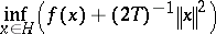 55. m1202304.png ; $\operatorname { inf } _ { x \in H } \left( f ( x ) + ( 2 T ) ^ { - 1 } \| x \| ^ { 2 } \right)$ ; confidence 0.868