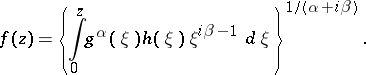 ; $f ( z ) = \{ \int _ { 0 } ^ { z } g ^ { \alpha } ( \xi ) h ( \xi ) \xi ^ { i \beta - 1 } d \xi \} ^ { 1 / ( \alpha + i \beta ) }.$ ; confidence 0.544