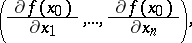 ; $\left( \frac { \partial f ( x _ { 0 } ) } { \partial x _ { 1 } } , \ldots , \frac { \partial f ( x _ { 0 } ) } { \partial x _ { n } } \right),$ ; confidence 0.541