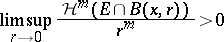 ; $\operatorname { limsup } _ { r \rightarrow 0 } \frac { \mathcal{H} ^ { m } ( E \cap B ( x , r ) ) } { r ^ { m } } > 0$ ; confidence 0.556