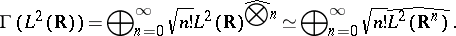 56. s12026011.png ; $\Gamma ( L ^ { 2 } ( \mathbf{R} ) ) = \bigoplus _ { n = 0 } ^ { \infty } \sqrt { n !} L ^ { 2 } ( \mathbf{R} )^{ \widehat { \bigotimes } n } \simeq \bigoplus _ { n = 0 } ^ { \infty } \sqrt { n !} \widehat{ L ^ { 2 } ( \mathbf{R} ^ { n } ) }.$ ; confidence 0.117